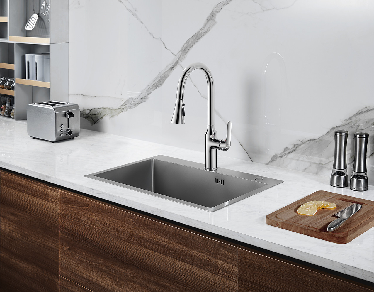 | प्रोडक्ट का नाम: | स्टेनलेस स्टील रसोई सिंक | आकार: | 620x450x220 मिमी |