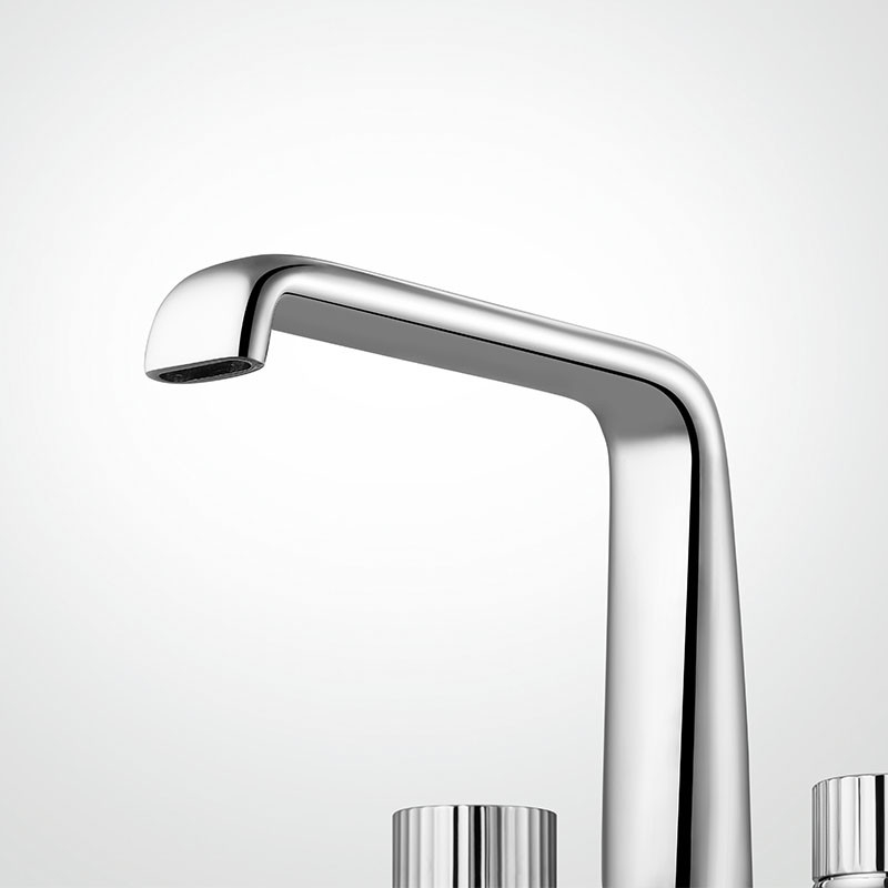 गर्म ठंडा पानी आधुनिक स्नानघर नल क्रोम डेक पर चढ़कर 3 होल ड्यूल हैंडल