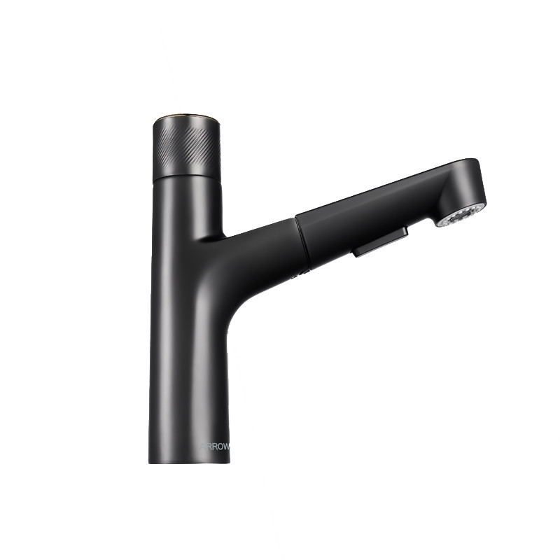ARROW ब्रास पुल-आउट नल वॉशरूम मैट ब्लैक बेसिन नल